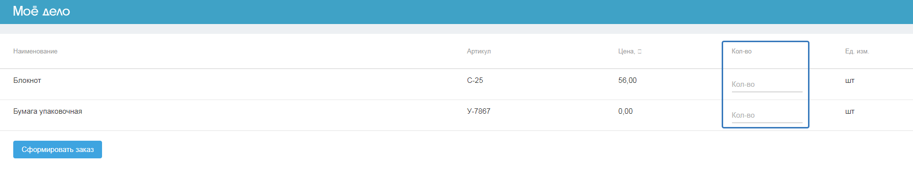 При переходе по ссылке, указанной в письме, клиент попадает в окно для оформления заказа. В форме заказа необходимо указать количество товаров и после нажать на кнопку «Сформировать заказ»: