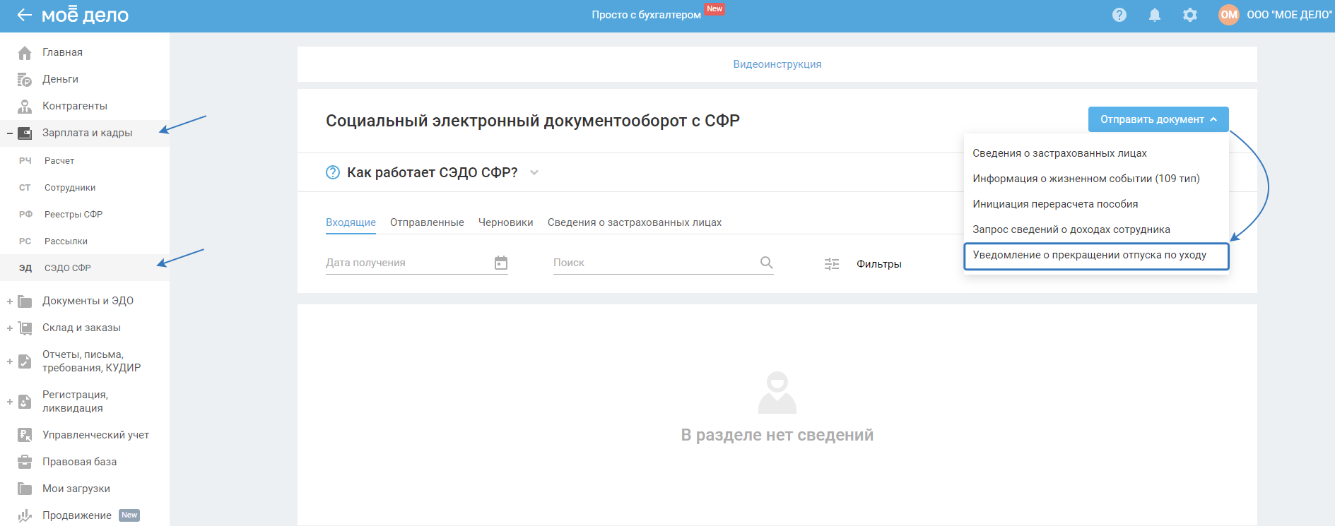 В СЭДО появилась возможность подать уведомление о прекращении отпуска по уходу за ребёнком до 1,5 лет.