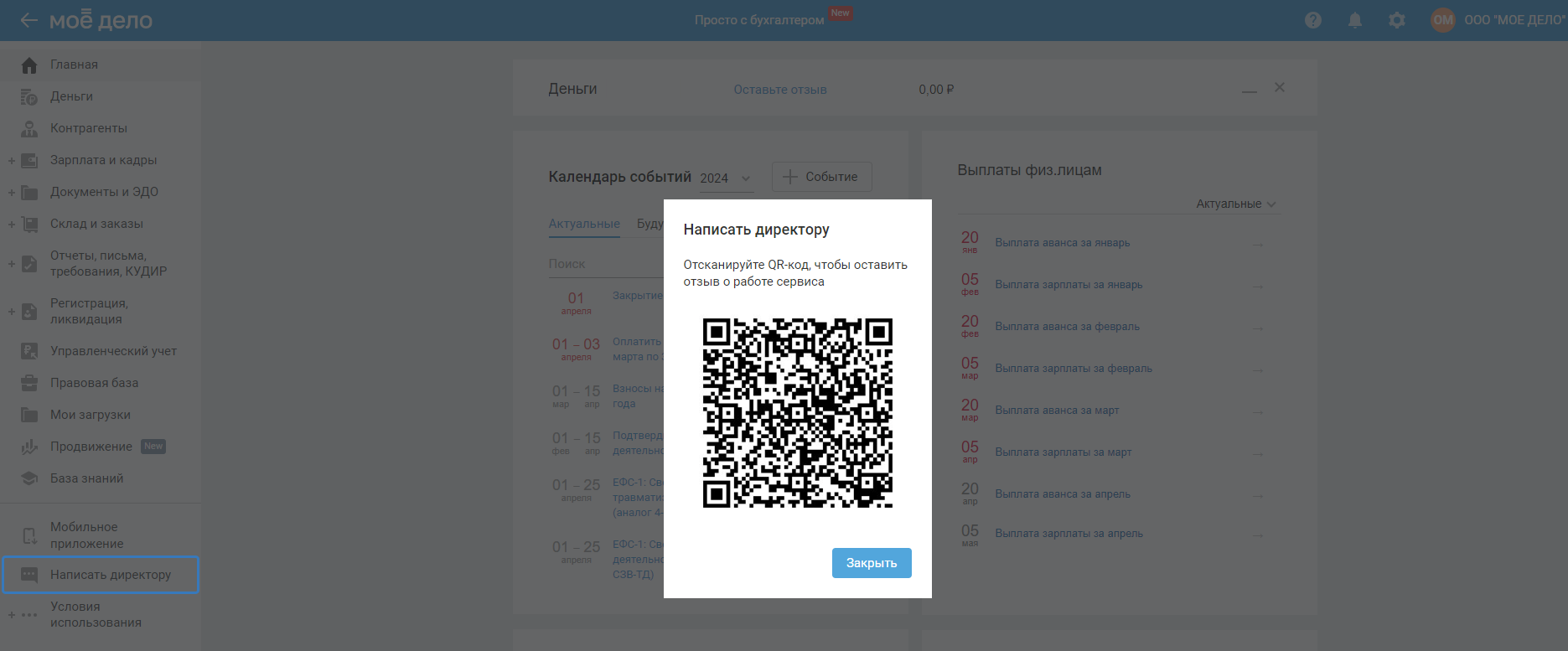 Для этого нажмите «Написать директору» и в открывшемся окне отсканируйте QR-код: