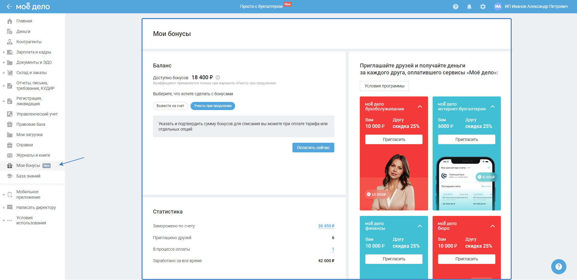 - ознакомиться со статистикой (сколько бонусов заморожено по счёту, сколько приглашено друзей, кто из друзей в процессе оплаты, сколько вы заработали за всё время):