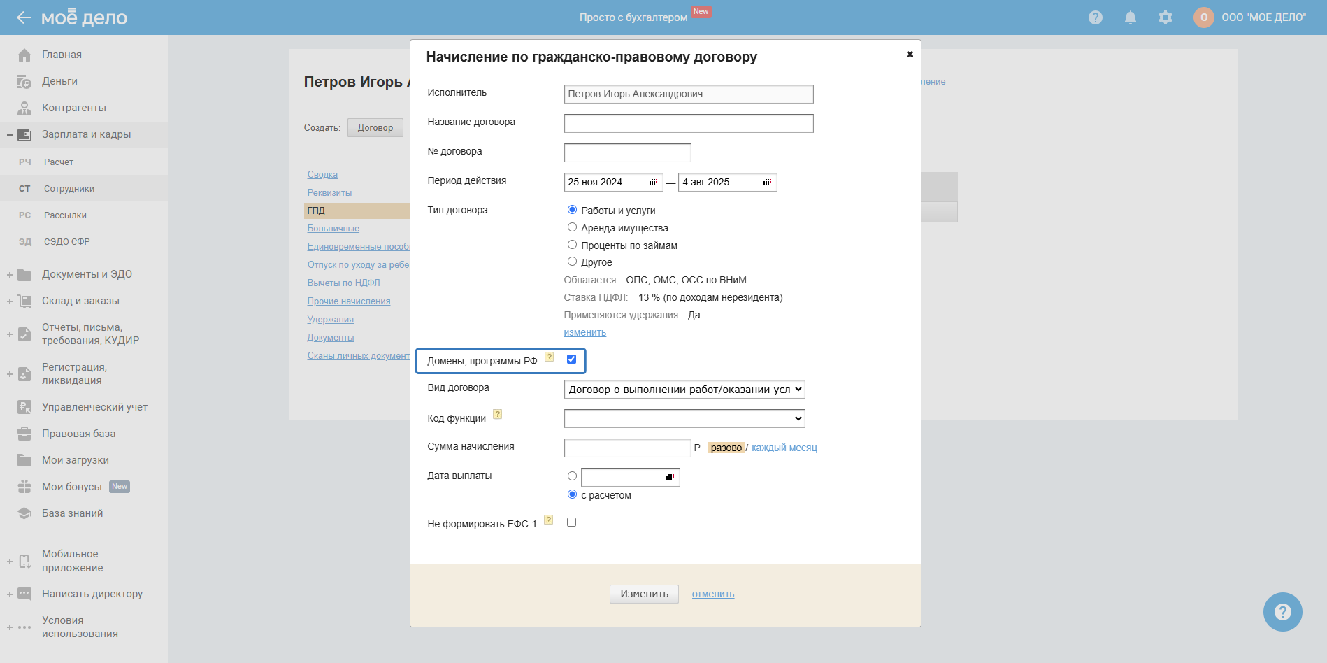 - ГПД с 1 января 2025 по 31 января 2025 года — настройка есть.