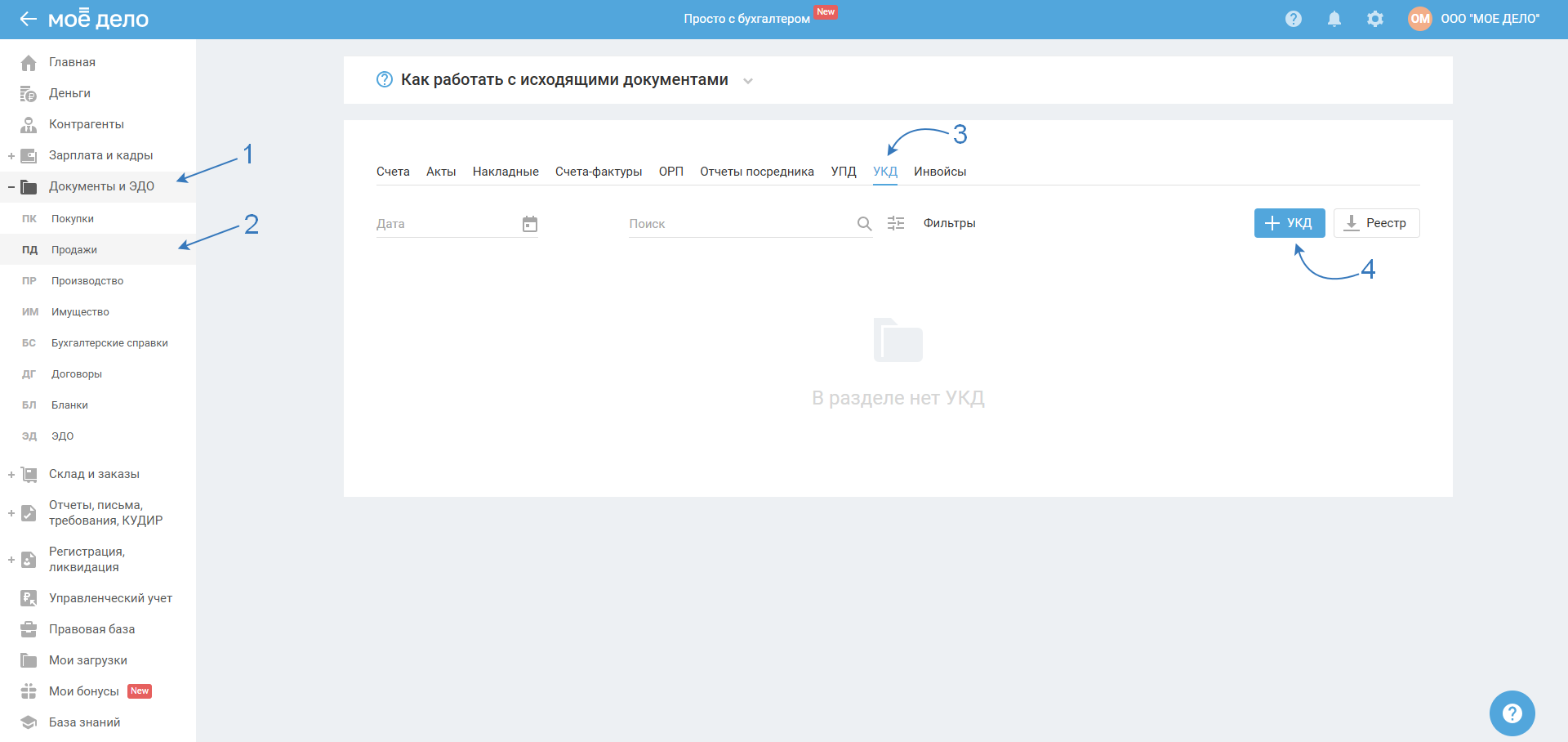 Обратите внимание, что на УСН нельзя создать документ УКД: