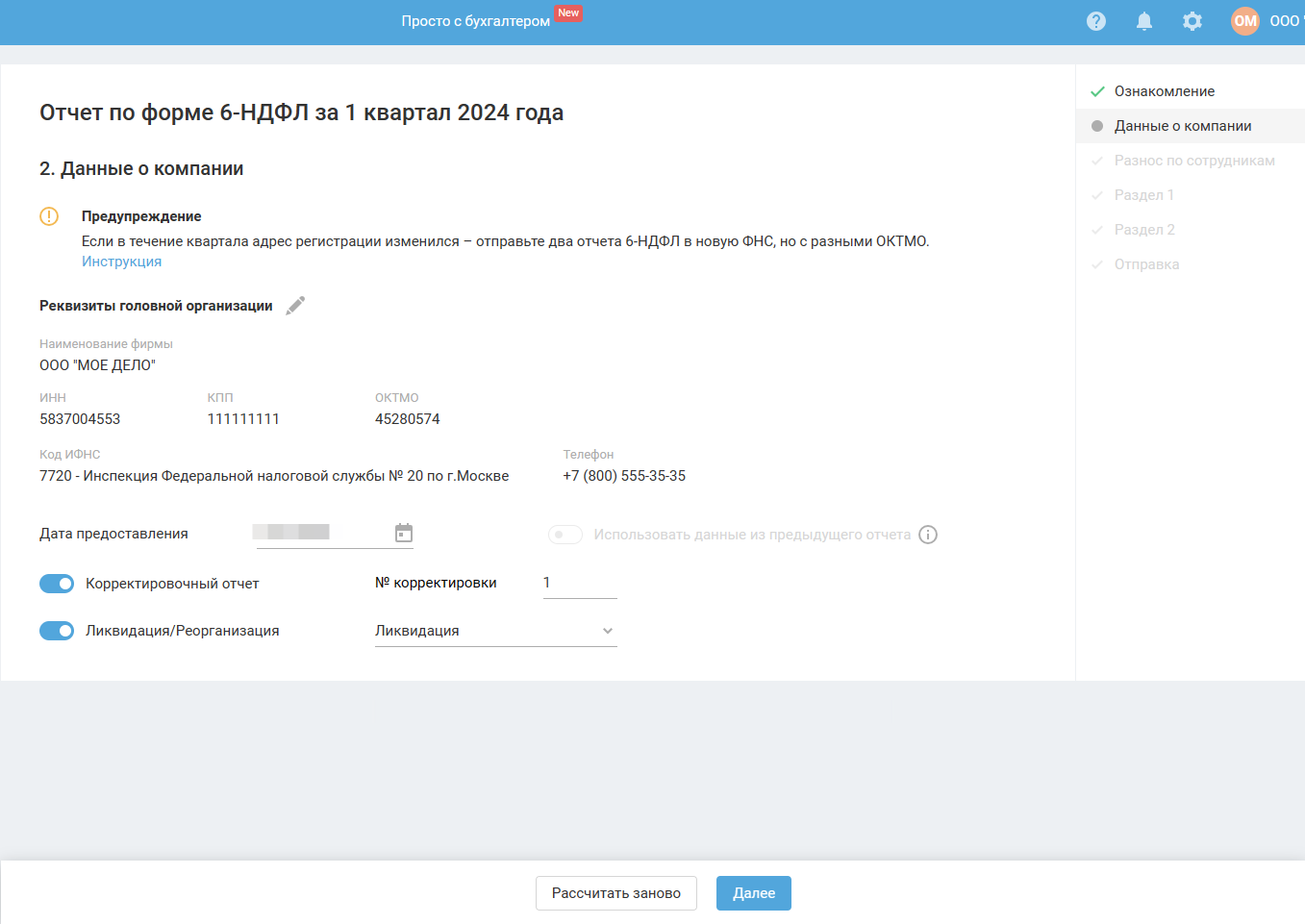 Важно. Шаг формируется за отчётный период при условии ликвидации (реорганизации) организации.
