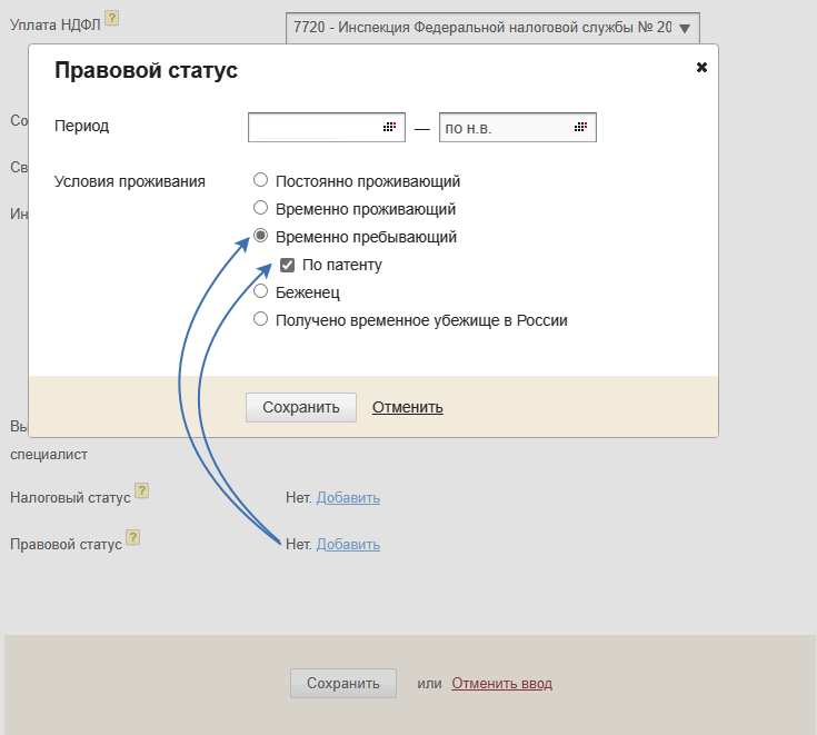 В открывшемся окне в поле ОКТМО укажите (временно) старый ОКТМО, нажмите «Сохранить»: