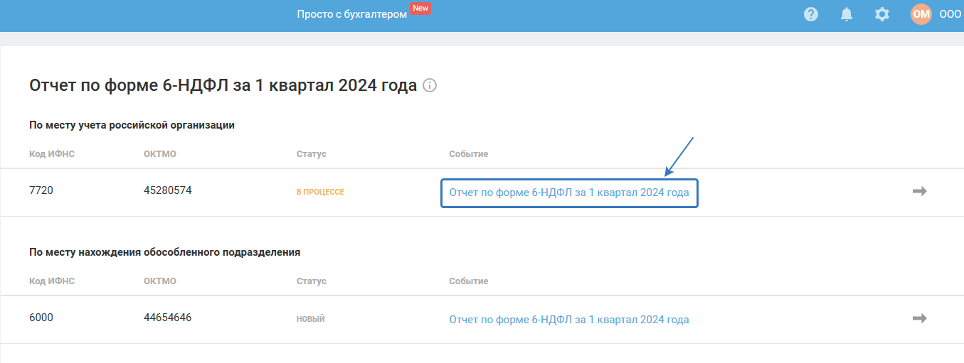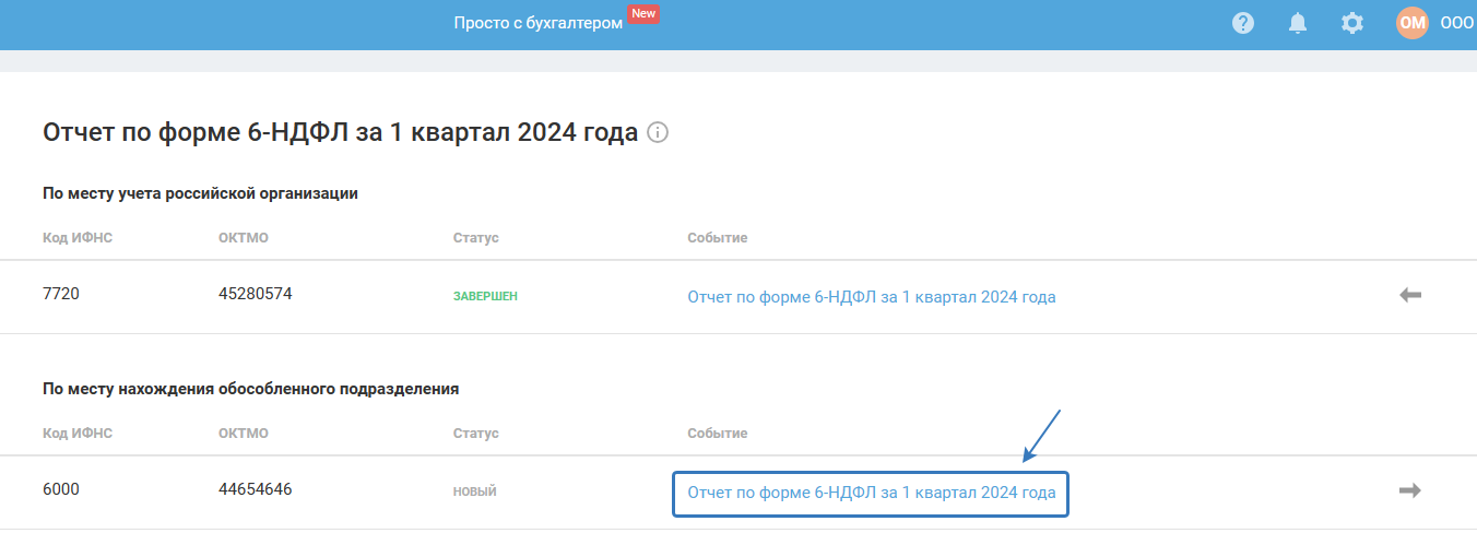 Для формирования отчёта в другую налоговую вернитесь на главную страницу, в Налоговом календаре выберите событие по формированию 6-НДФЛ за нужный период.
