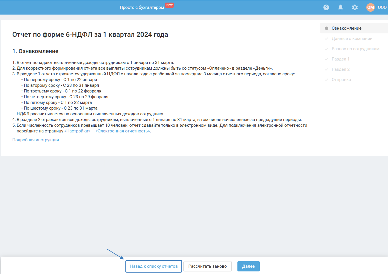 Последовательно пройдите все шаги мастера по кнопке «Далее» и отправьте отчёт.