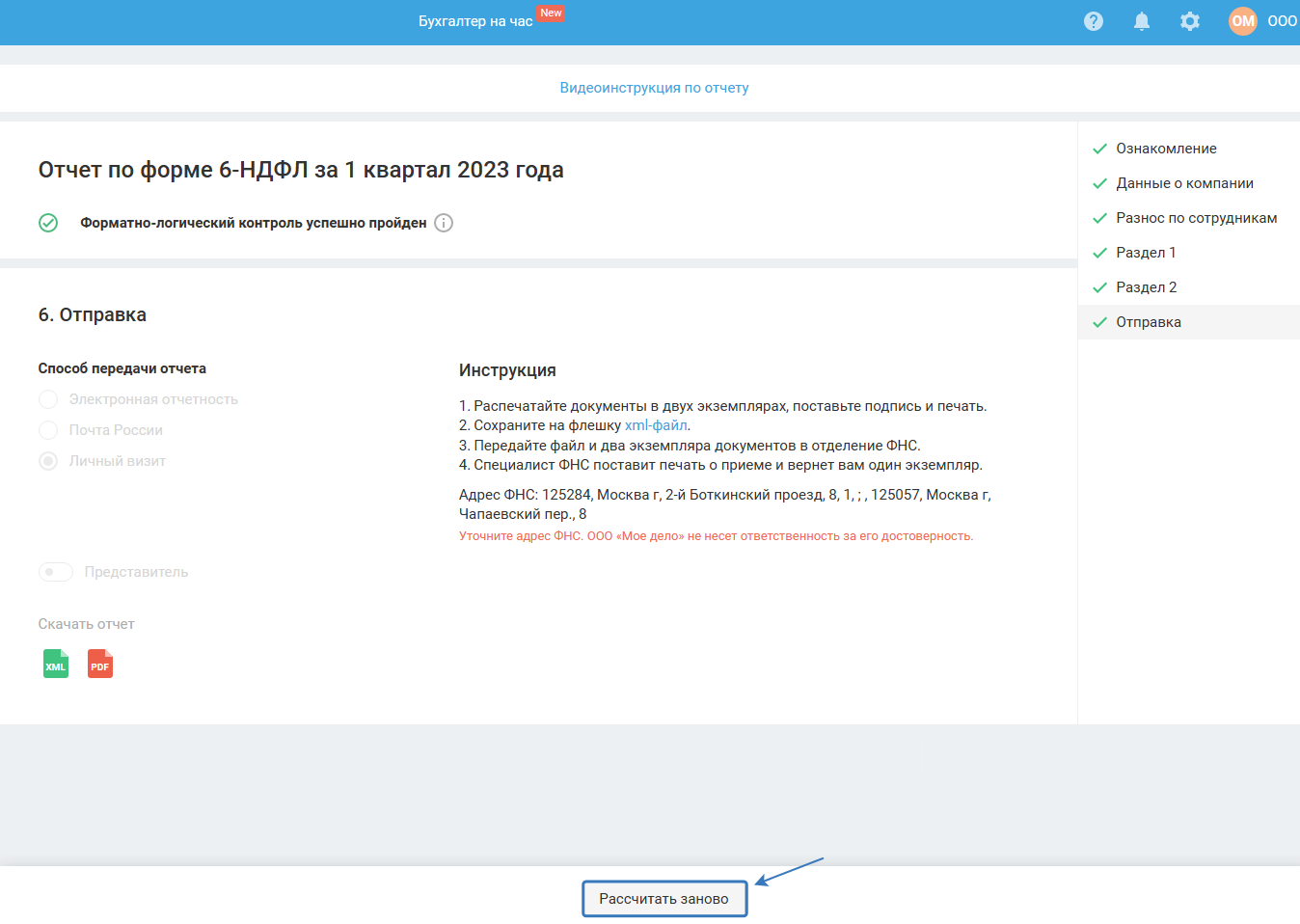 Последовательно пройдите все шаги мастера по кнопке «Далее» и отправьте отчёт.