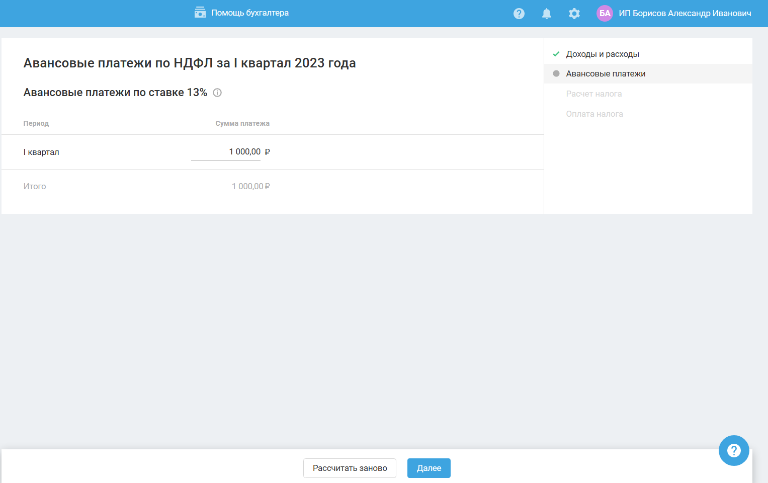 ИП на ОСНО | Авансовые платежи 3-НДФЛ