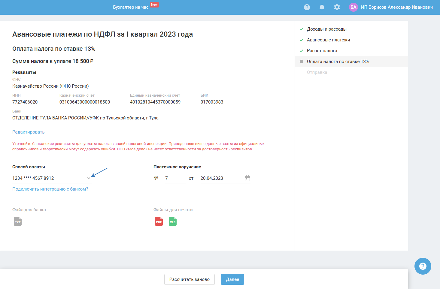 Как оплатить аванс по НДФЛ за ИП