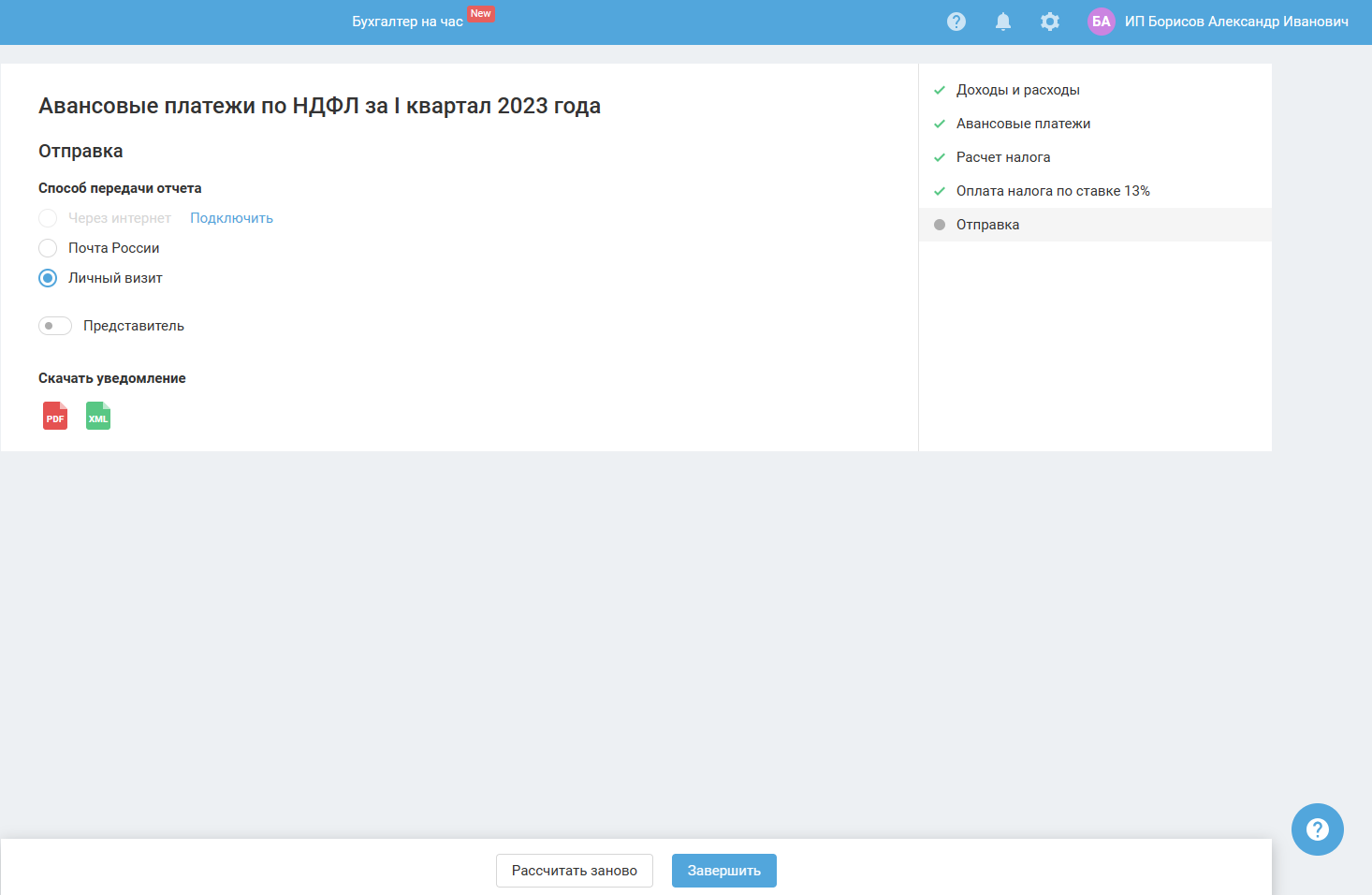 Теперь по итогам отчётных периодов необходимо исчислять сумму авансовых платежей самостоятельно, исходя из фактически полученных доходов и налоговых вычетов, а не на основании налоговых уведомлений об уплате НДФЛ, рассчитанного налоговым органом с предполагаемого дохода.