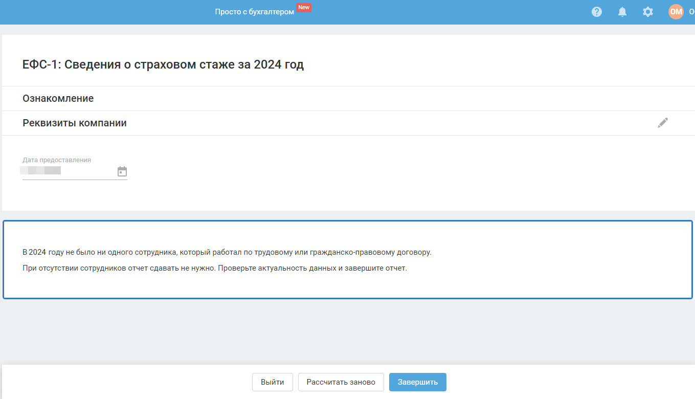 Если в отчётном году не было ни одного сотрудника, который работал по трудовому или гражданско-правовому договору, то отчёт сдавать не нужно. Проверьте актуальность данных и завершите отчёт: