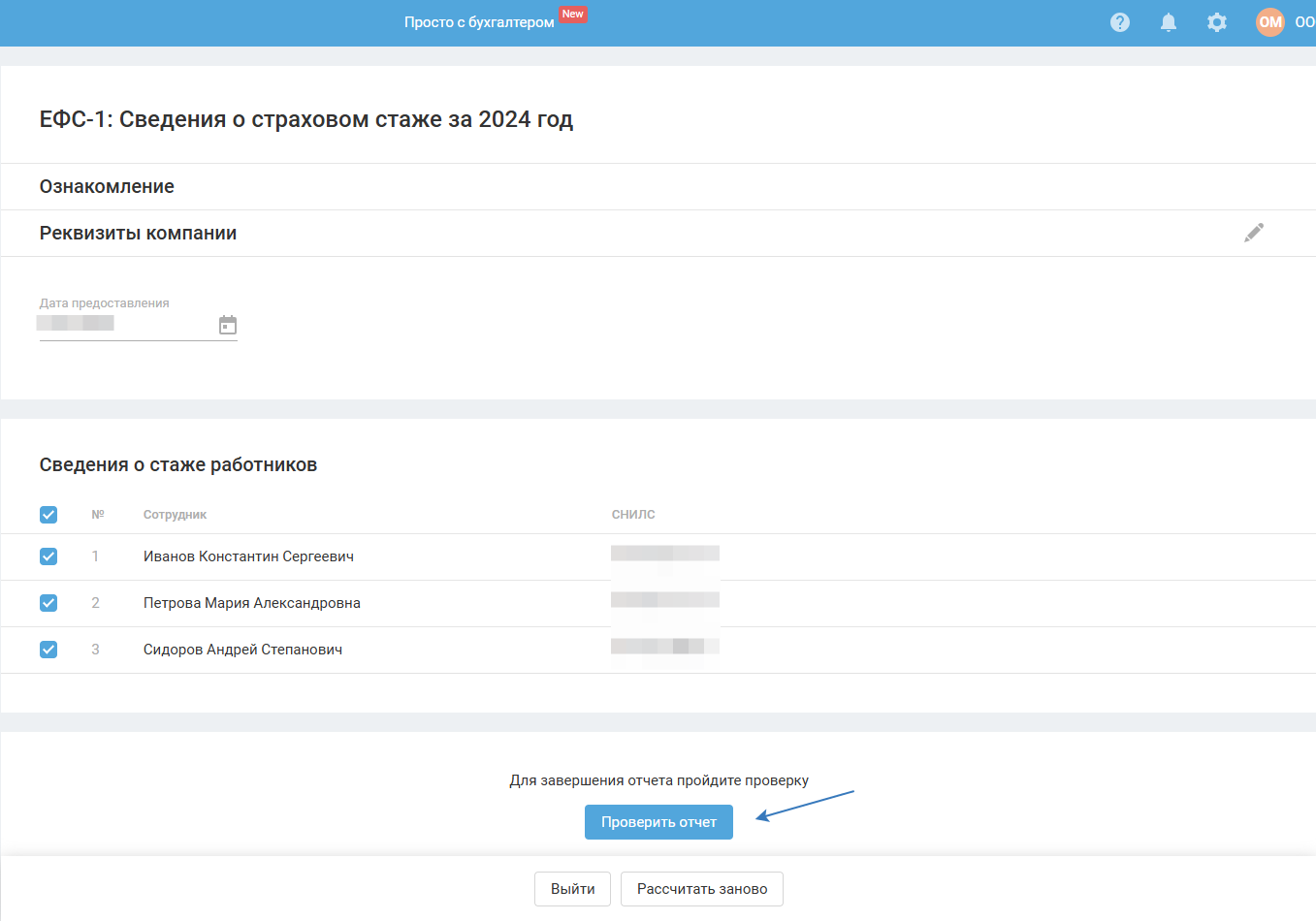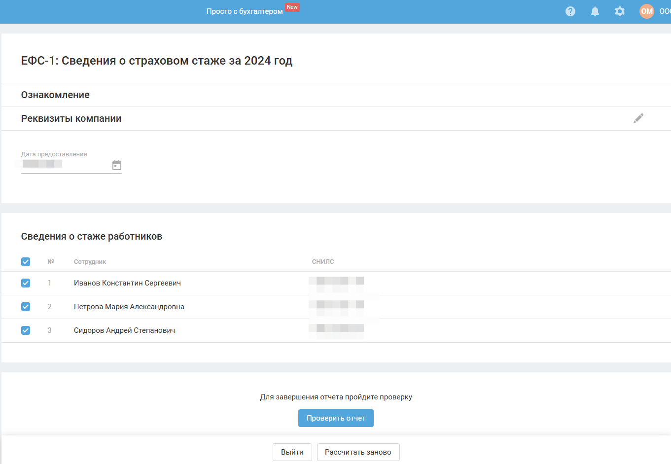 В сервисе автоматически попадают в отчёт все сотрудники, которые работали по ТД или по ГПД в отчётном периоде. Представление отчёта на всех застрахованных лиц не является ошибкой.