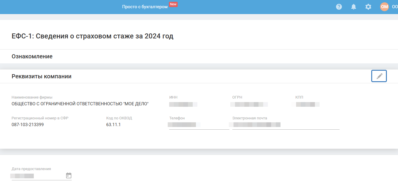 В строке «Дата предоставления» устанавливается по умолчанию текущая дата заполнения.