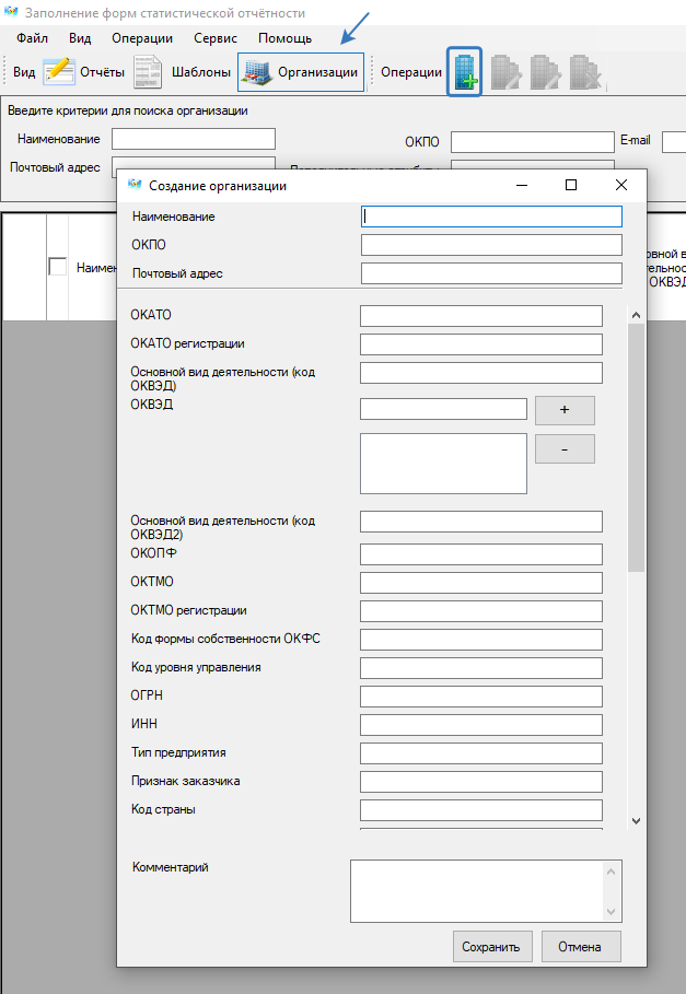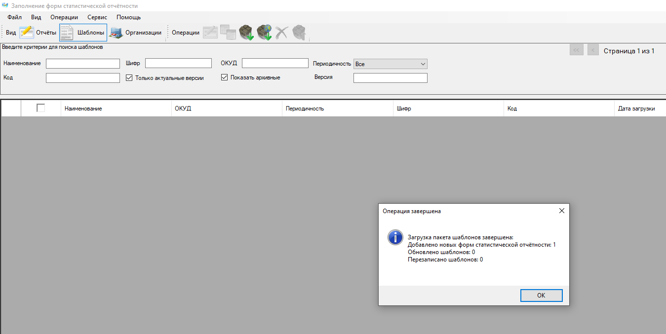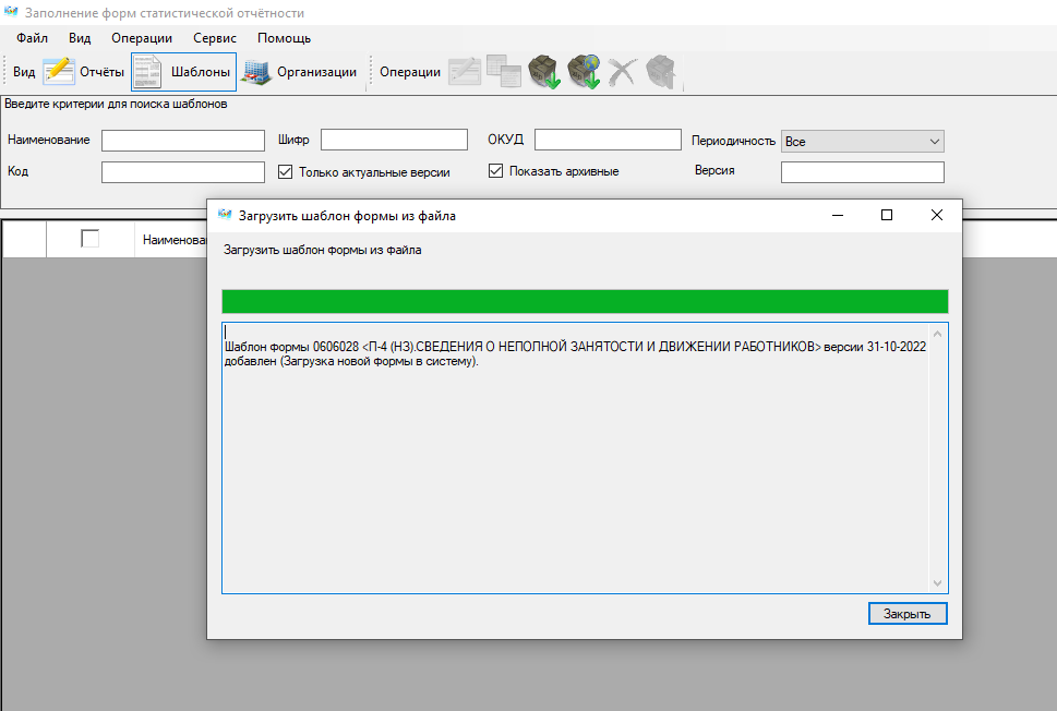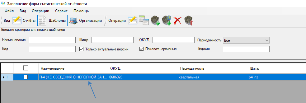 Для заполнения форм в программе Росстата требуется загрузить актуальные шаблоны этих форм и подключить их в программе.