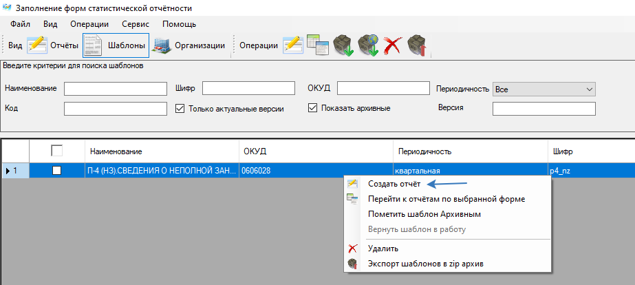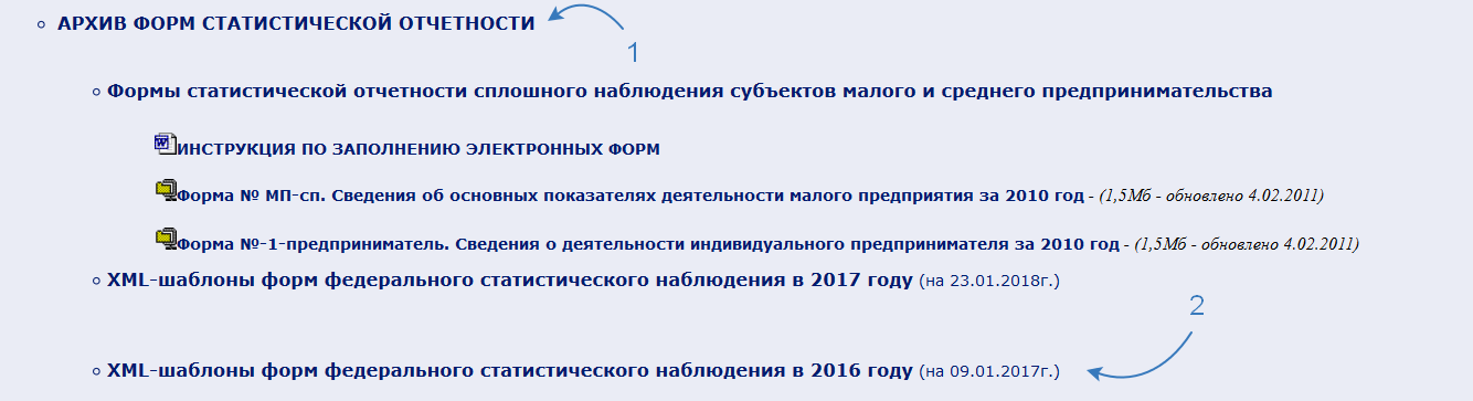 Для старых периодов шаблоны вы можете найти на этой странице в разделе «Архив форм статистической отчётности». Если файлы были получены в архиве (файл с расширением *.zip или *.rar), то предварительно необходимо их извлечь из архива.