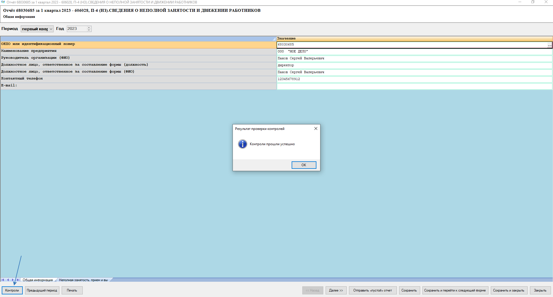 5. Чтобы проверить правильность введённых данных, нажмите на кнопку «Контроли» в нижней части окна, там же отобразится список найденных ошибок.
