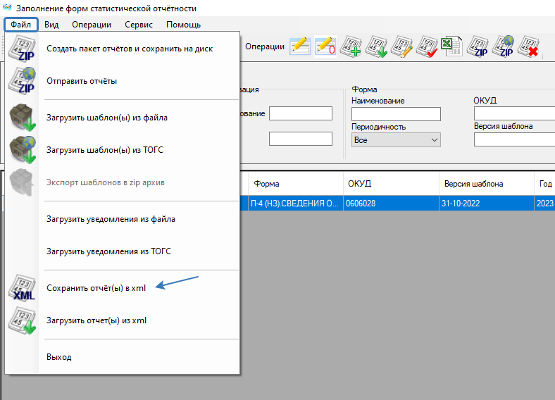 Выберите пункт меню «Файл — Сохранить отчёт в xml»: