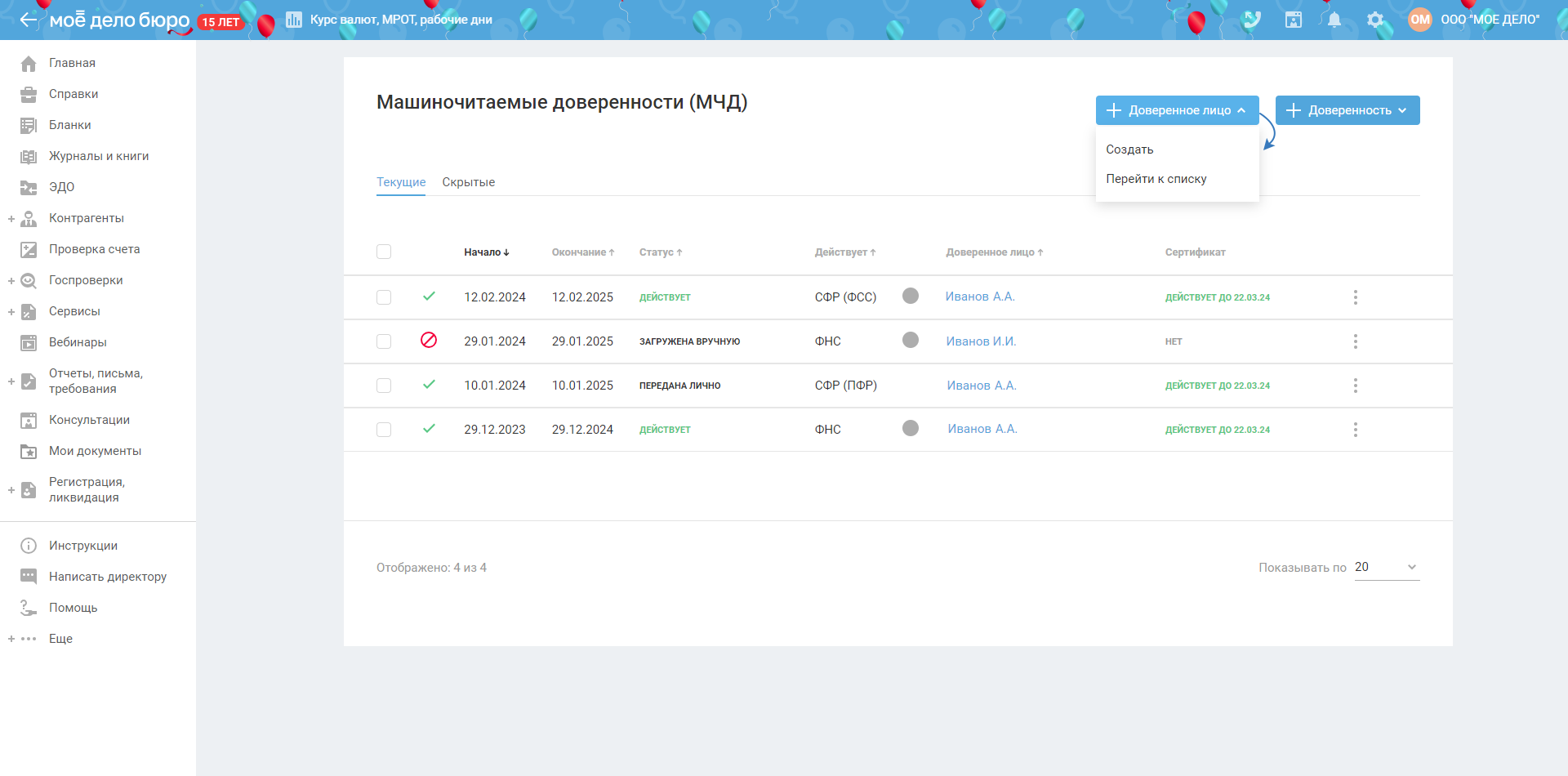 МЧД позволит отправлять отчётность и документы по доверенности.