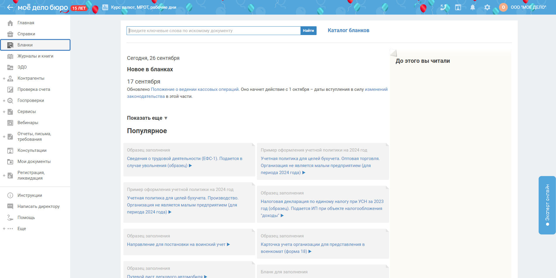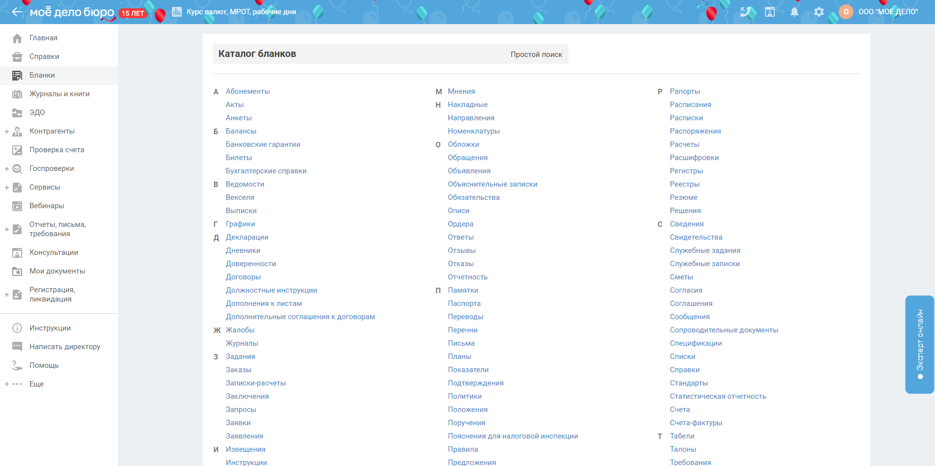 Раздел «Бланки» содержит в себе базу актуальных бланков документов: