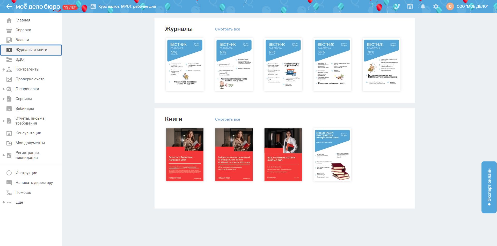 - регулярная публикация журналов и книг с полезным контентом, новостями о налогах и способах грамотно вести учёт компании;