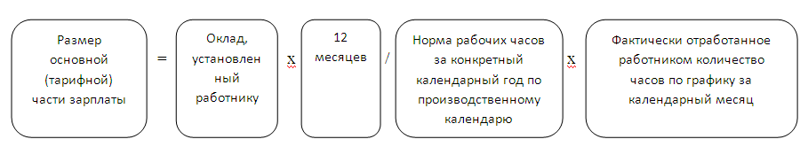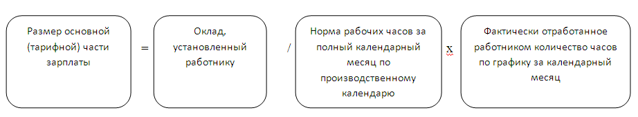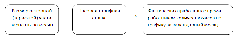 Следовательно, зарплата будет различаться по месяцам даже при окладной системе. Основная (тарифная) часть зарплаты рассчитывается так. При оплате на основе часовой тарифной ставки воспользуемся формулой: