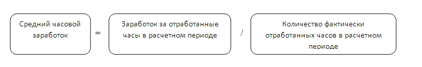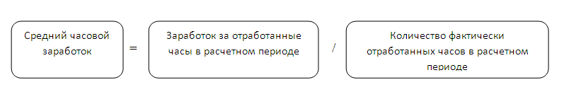 Средний часовой заработок определяется делением суммы заработной платы, фактически начисленной за отработанные часы в расчетном периоде, на количество часов, фактически отработанных в этом периоде.