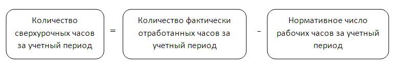 При суммированном учете сверхурочными являются часы, отработанные сверх нормы рабочих часов за учетный период (ст.99 ТК РФ). Поэтому определить их вы сможете только после окончания учетного периода. Для этого воспользуйтесь формулой: