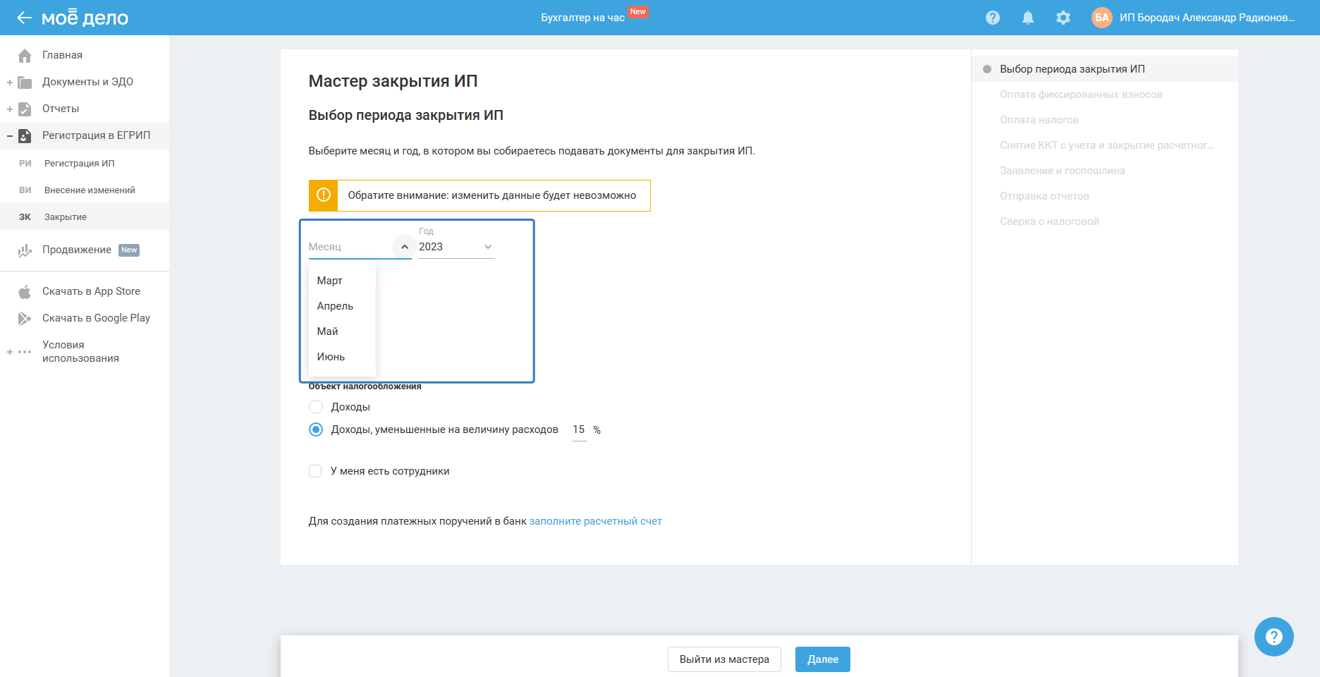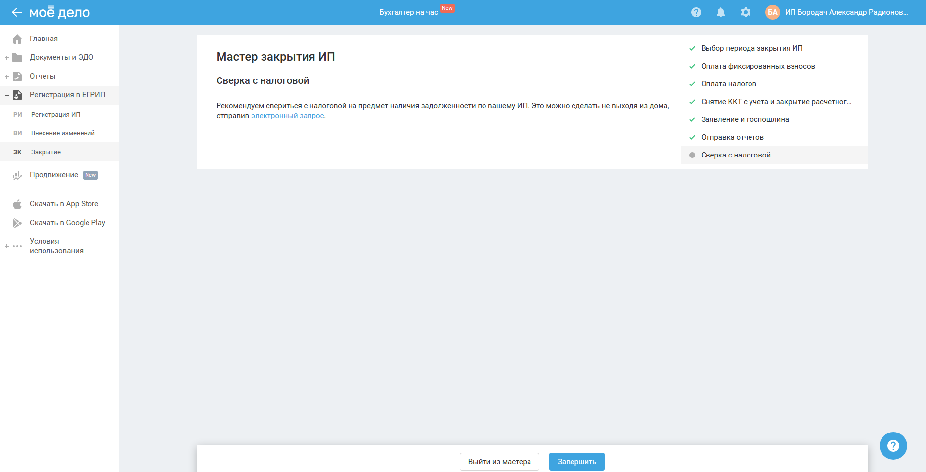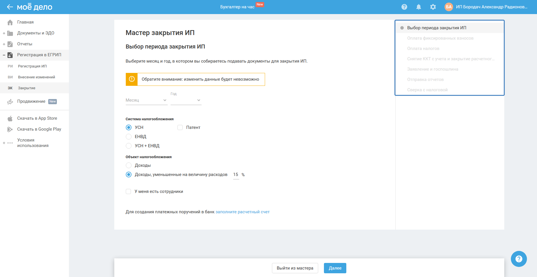 Если вы решили прекратить предпринимательскую деятельность, то с помощью Мастера закрытия ИП вы сможете: