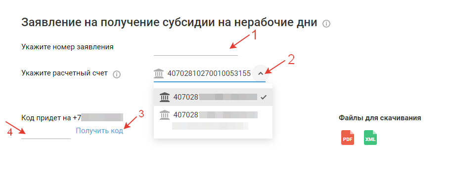 Далее выберите из выпадающего списка расчетный счет, на который вы хотите получить субсидию от ИФНС.