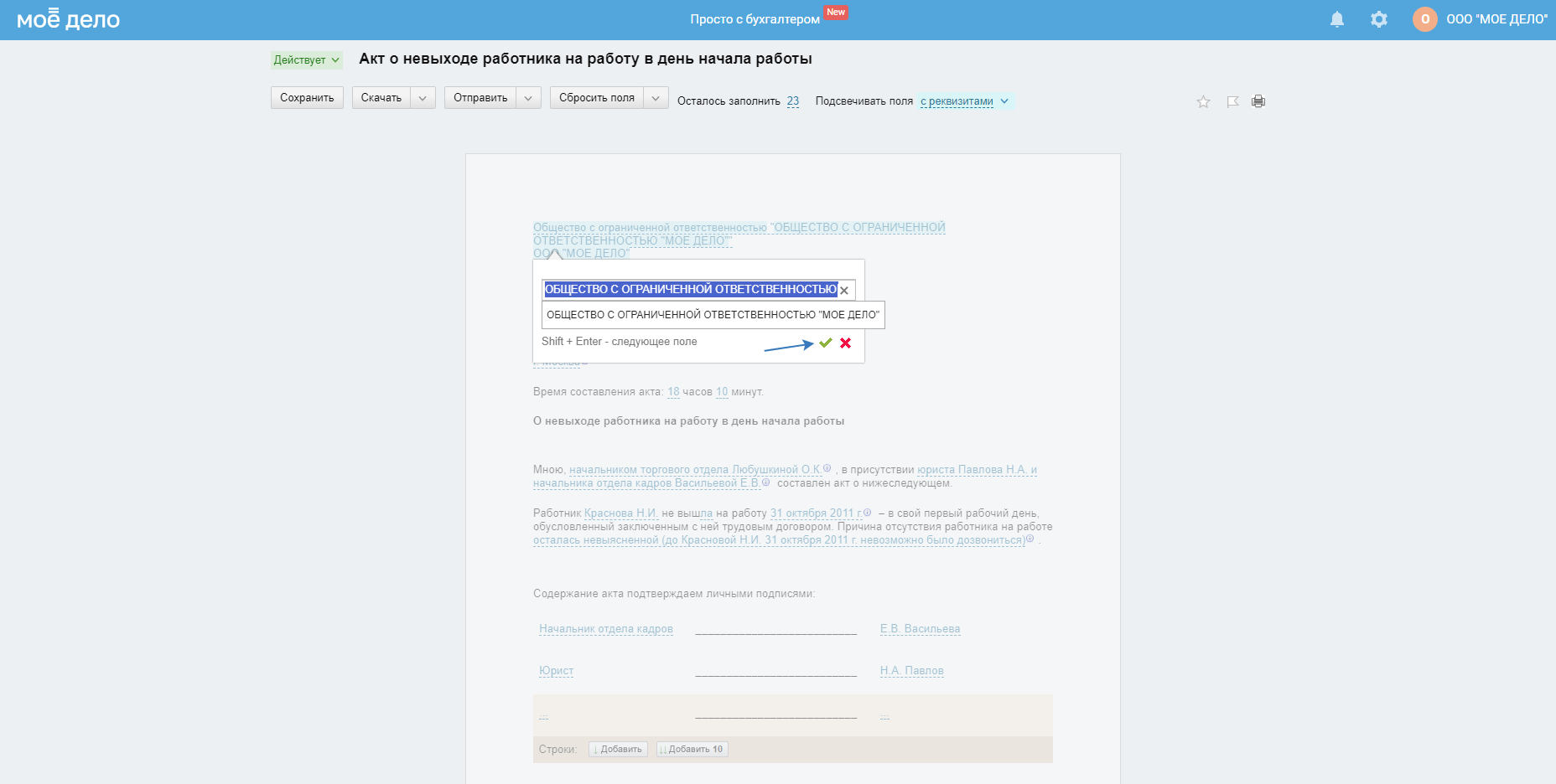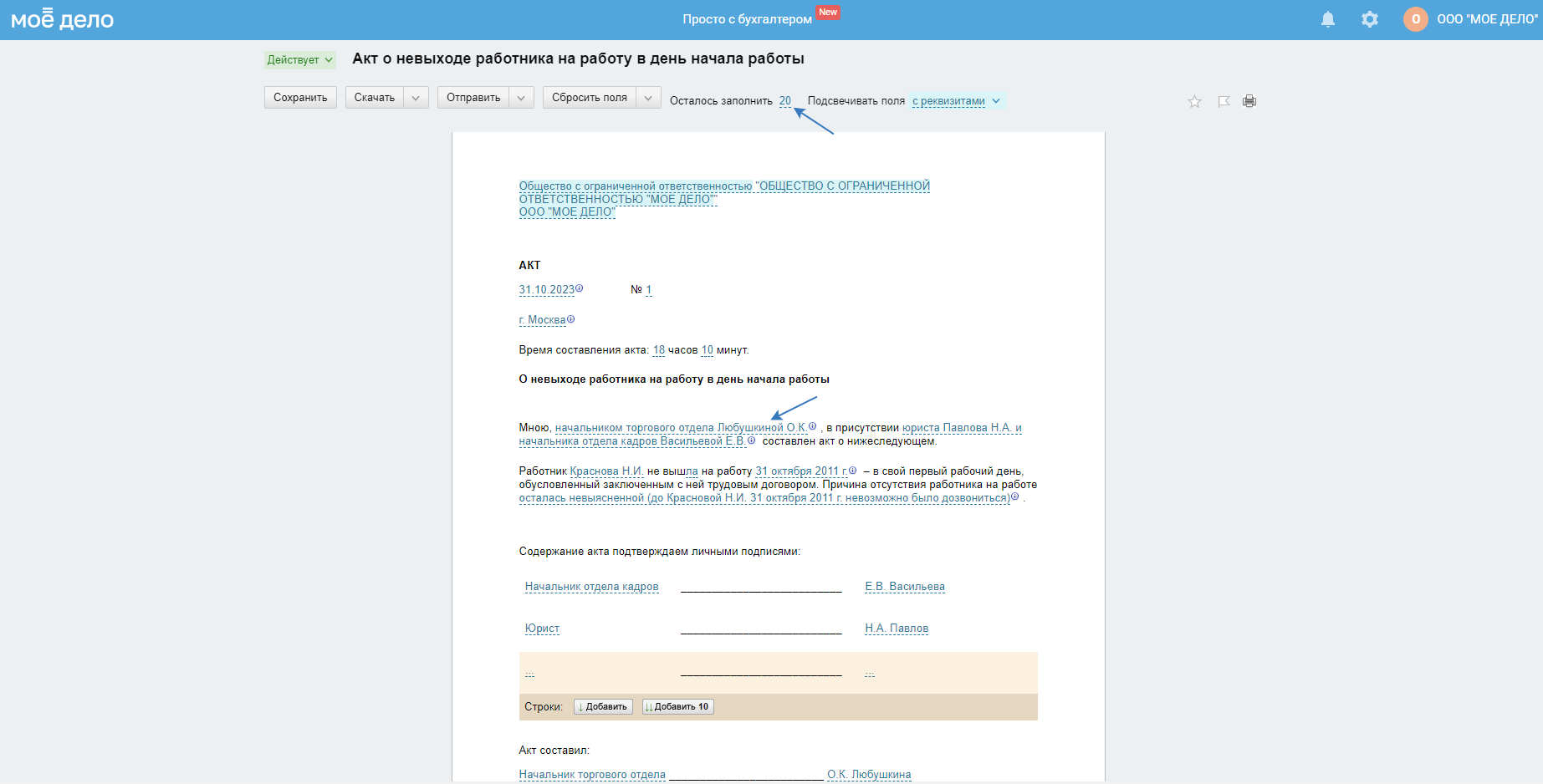 Внимание. Бланки в справочной информации не сохраняются. Их можно составить и скачать. Сохранить частично (или полностью) заполненный бланк, а позже вернуться к его заполнению (или редактированию) нельзя. Так же нельзя вести учёт операций в этих бланках. Весь учёт ведется в аккаунте. Если хотите на основе одного из шаблонов организовать внутренний учёт, тогда форму следует скачать к себе на компьютер в формате «.xls» или «.doc».