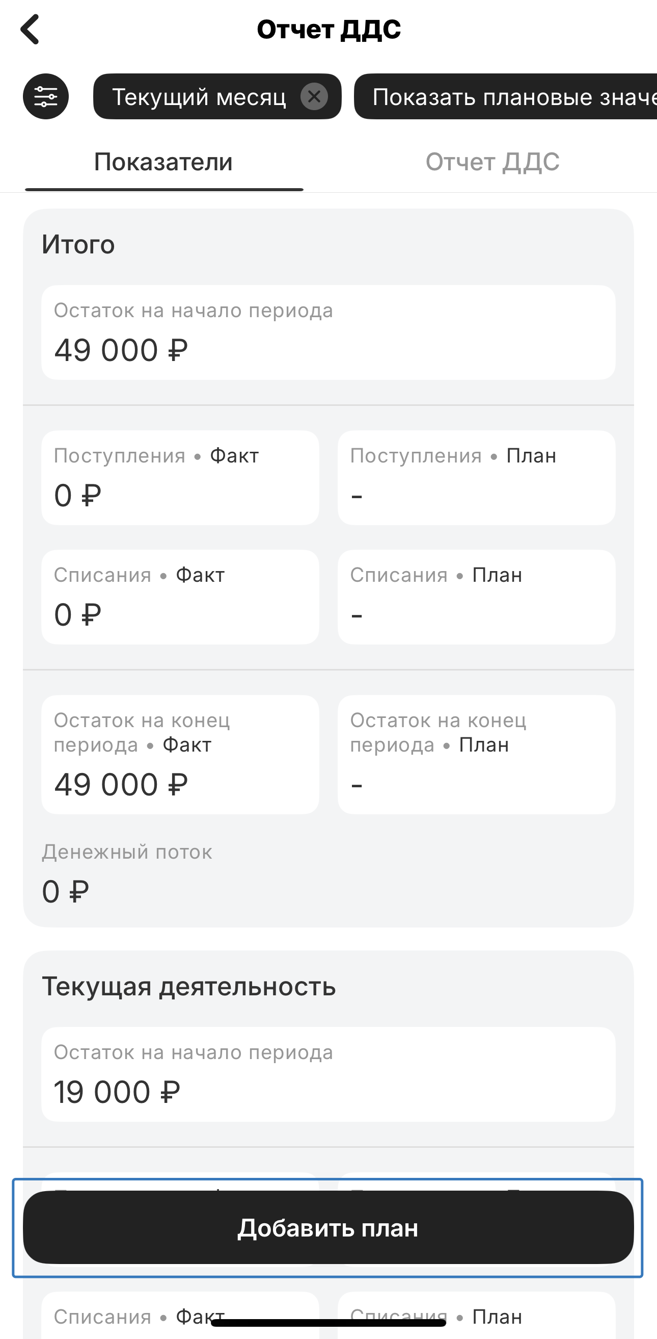 - Остаток на конец периода план = Фактический остаток на начала период по статье текущая деятельность + Текущая деятельность поступления план -Текущая деятельность списания план.
