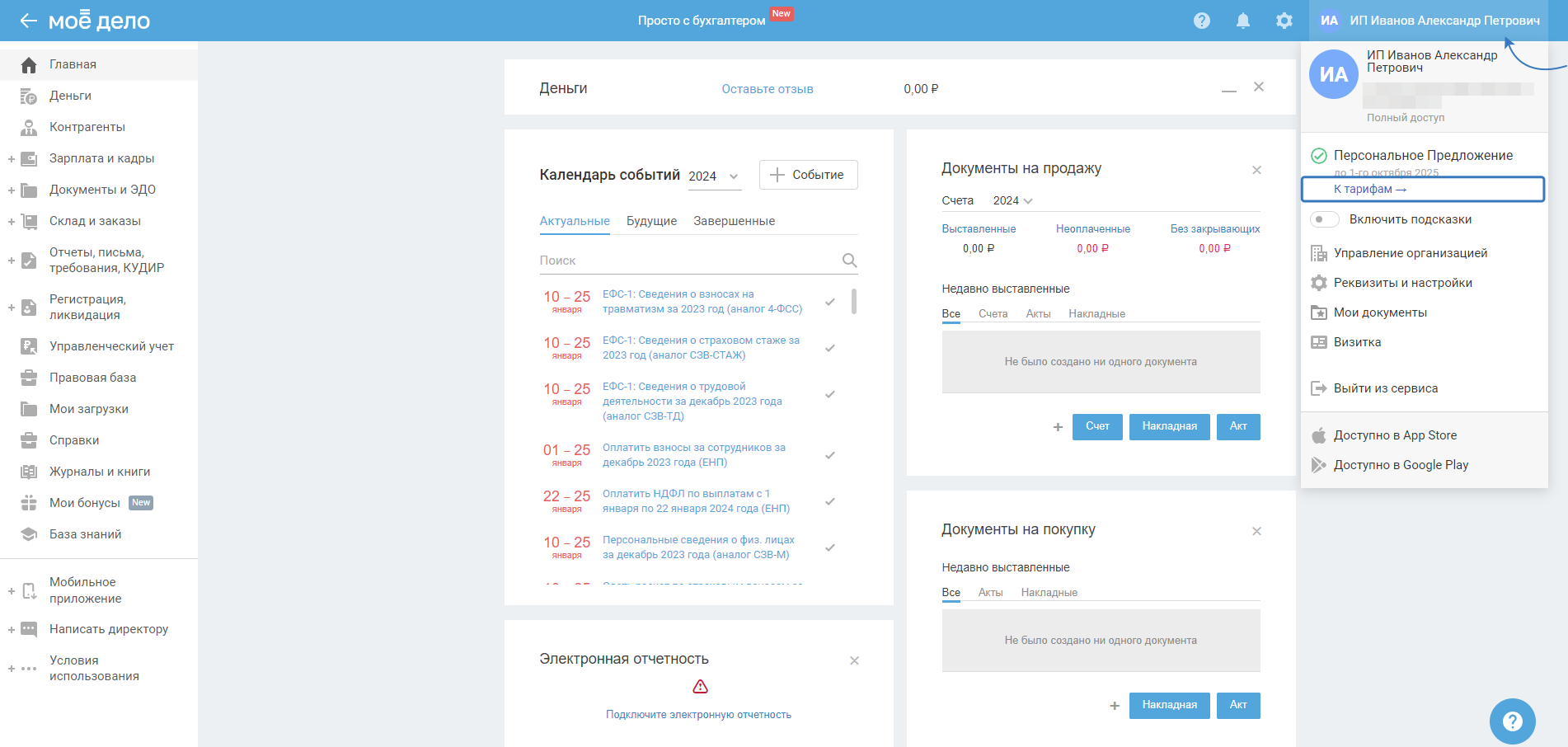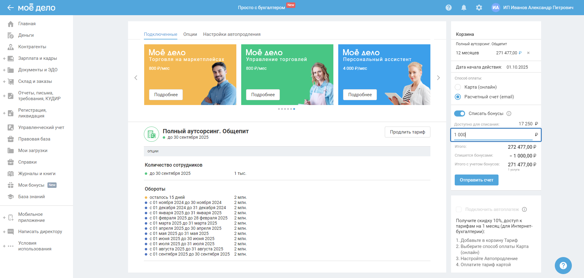 Также оплатить тариф и воспользоваться бонусами вы можете через активную ссылку «К тарифам», нажав на наименование ООО/ИП: