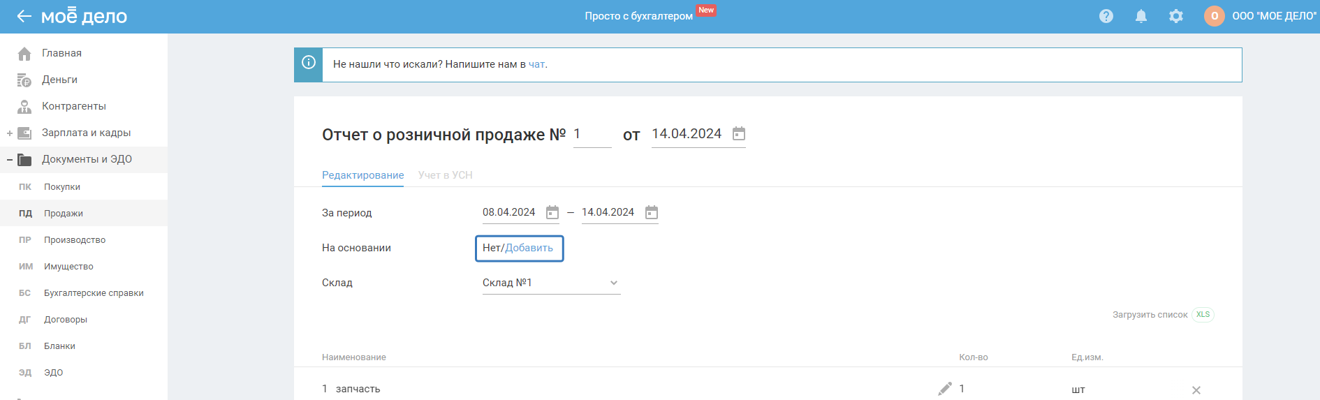 Например, в сервисе отражен отчёт о розничной продаже, но при этому в графе «На основании» не добавлен ПКО. Поэтому данные по этой организации попадут в отчёт.