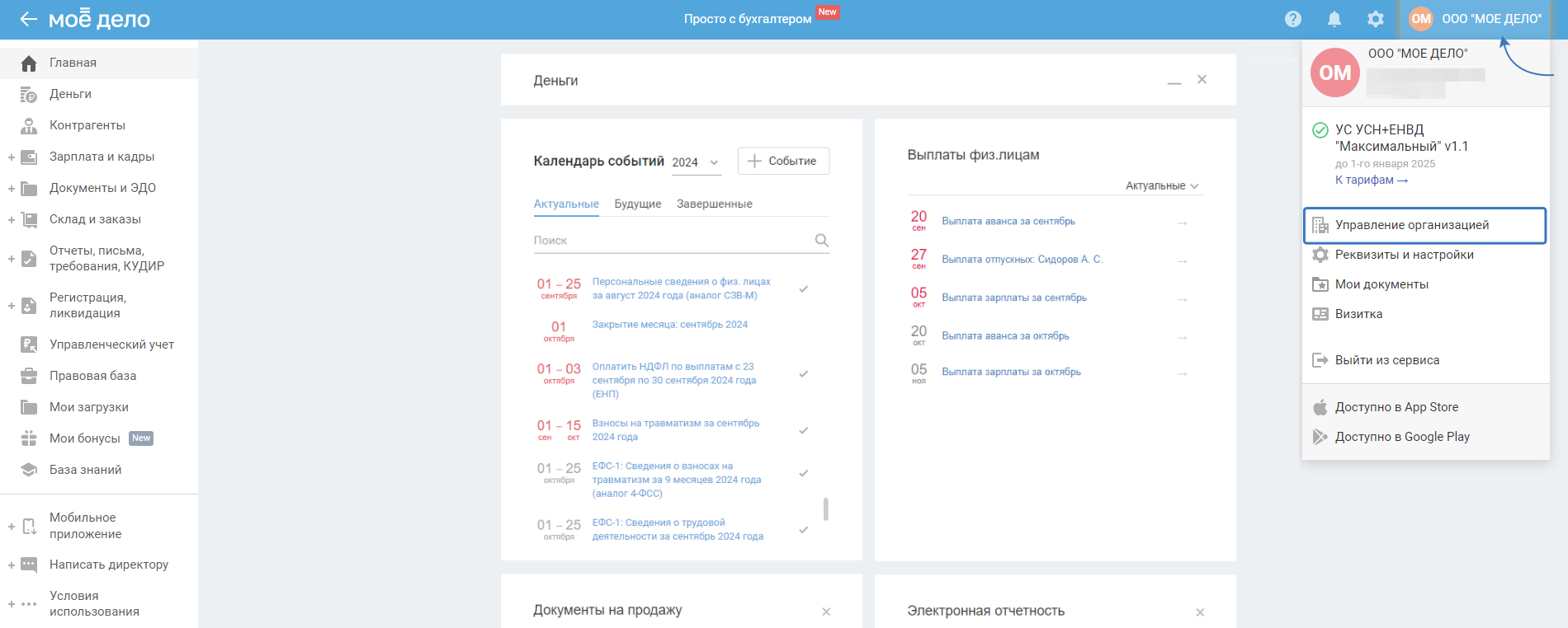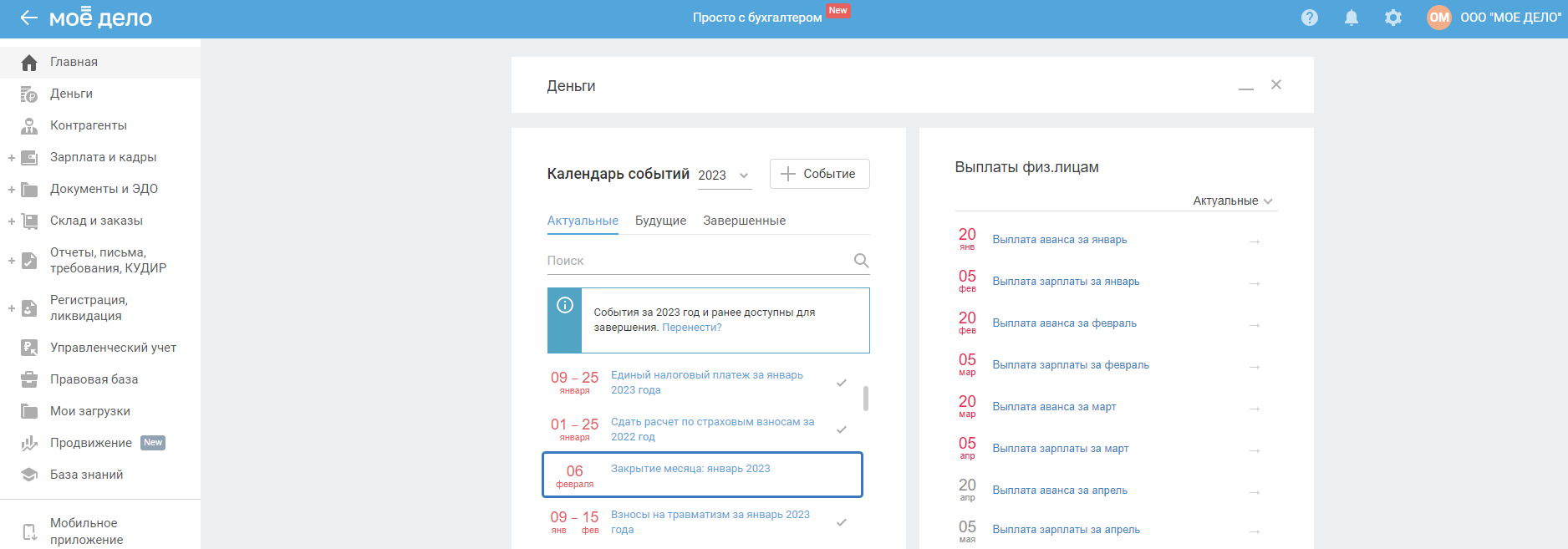 Если в сервисе не закрыты периоды, то это означает, что отчётность вы сформировать не сможете. Необходимо отразить все данные в сервисе (доходы, расходы, данные по сотрудникам и т.д.), после чего закрыть периоды в мастере «Закрытия месяца», который находится в Календаре событий на главной странице личного кабинета.