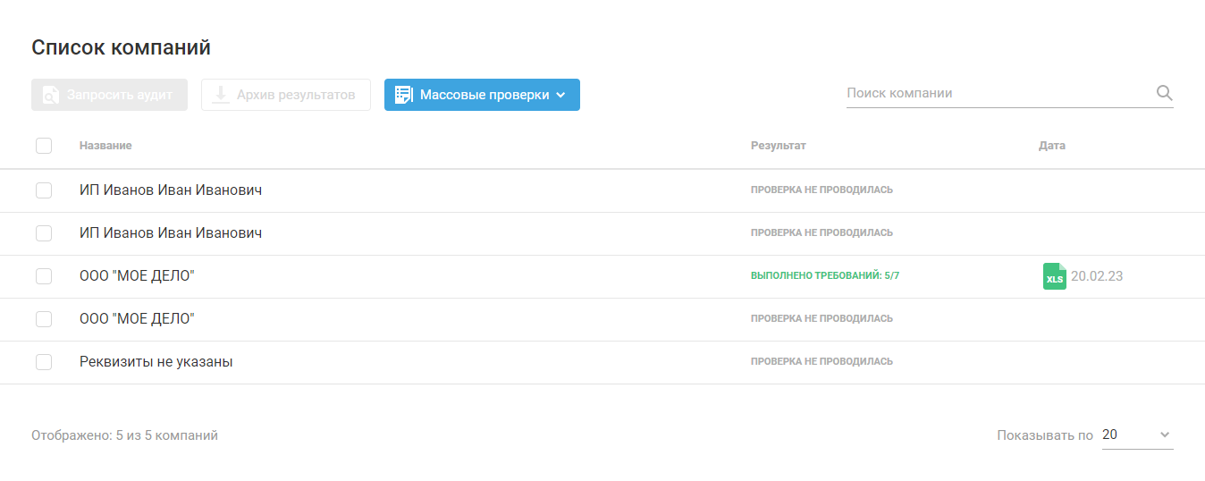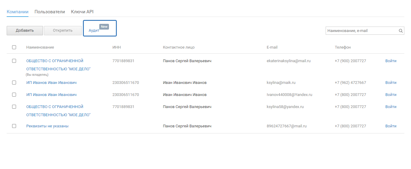 Во вкладке «Компании» Нажмите на «Аудит»: