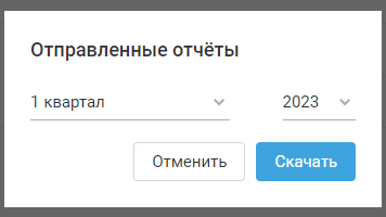 Нажмите на проверку «Отправленные отчёты», выберите период (квартал и год), нажмите «Скачать»: