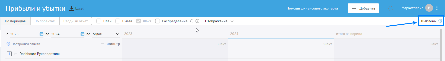 Для удобства в сервисе предусмотрены Шаблоны настроек отображения отчёта.