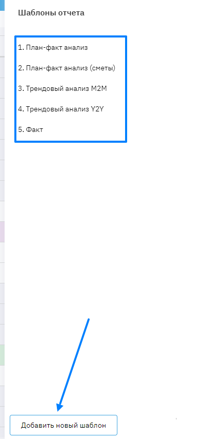 Нажмите на кнопку «Шаблоны» и выберите нужный вариант из представленных или добавьте свой шаблон отчёта: