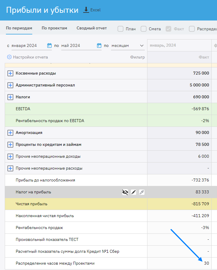 В отличие от бухгалтерского «Отчёта о Финансовых Результатах» в «Отчёт о прибылях и убытках» можно учитывать показатели сразу нескольких юридических лиц, создавать плановые показатели и проводить план/факт анализ отклонений за период.