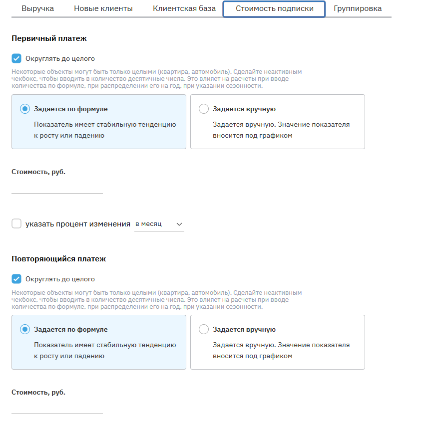 2. Укажите стоимость единицы и при необходимости процент изменения в месяц.