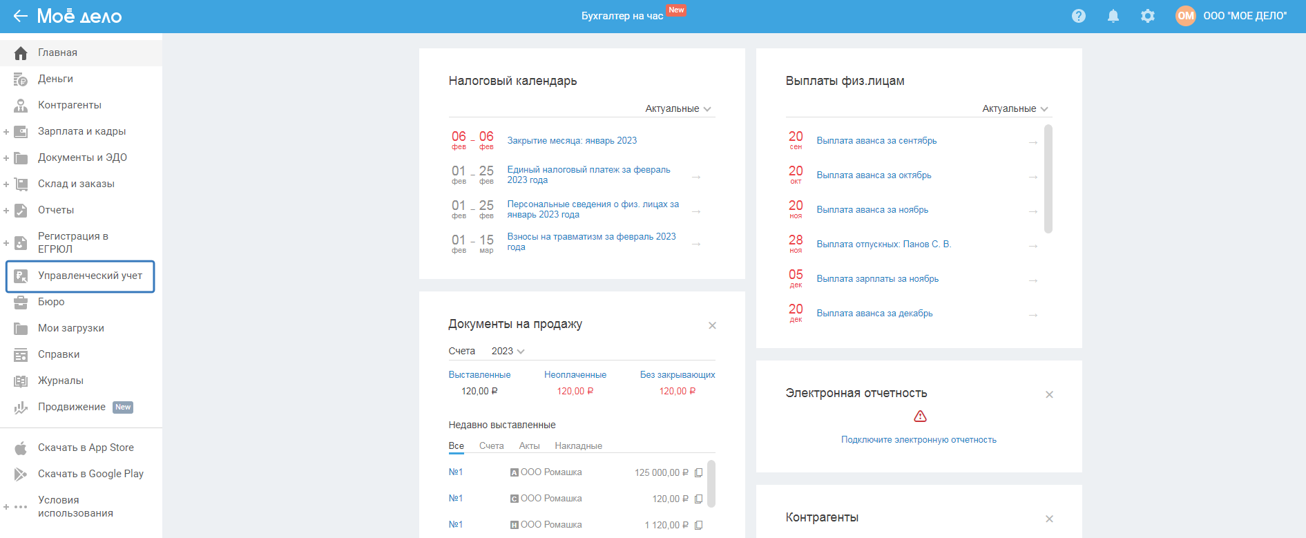 Пройдите в раздел «Управленческий учёт» в вертикальном меню.