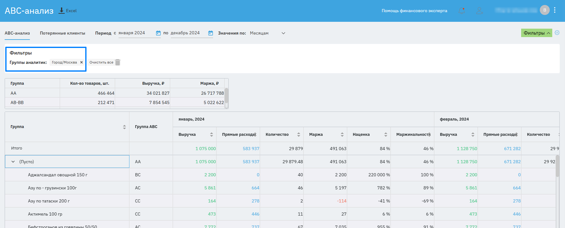 Если пользователь использует группы аналитик для «Регионов» или «Магазинов», то с июньским обновлением он может отфильтровать отчёт по продажам по конкретной группе аналитик.