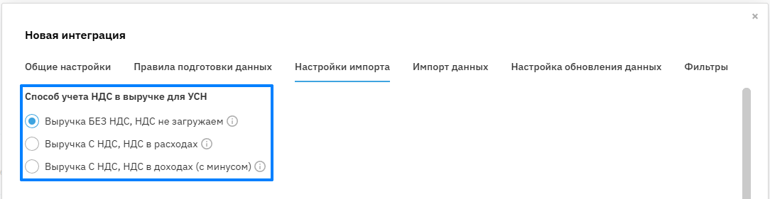 1. Выручка без НДС — НДС не загружаем. Это наиболее правильный вариант с точки зрения финансового учёта.