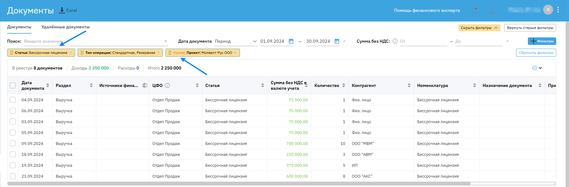 - Добавили во все фильтры возможность искать значения «кроме» выбранных.