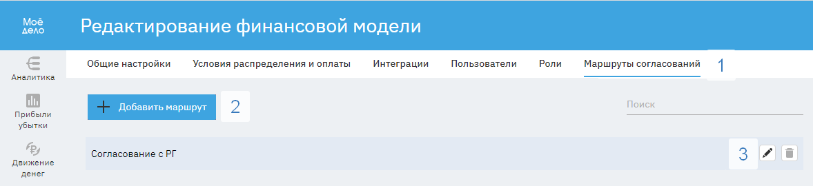 По кнопке «Добавить маршрут» (2) можно перейти в меню создания нового маршрута согласования.