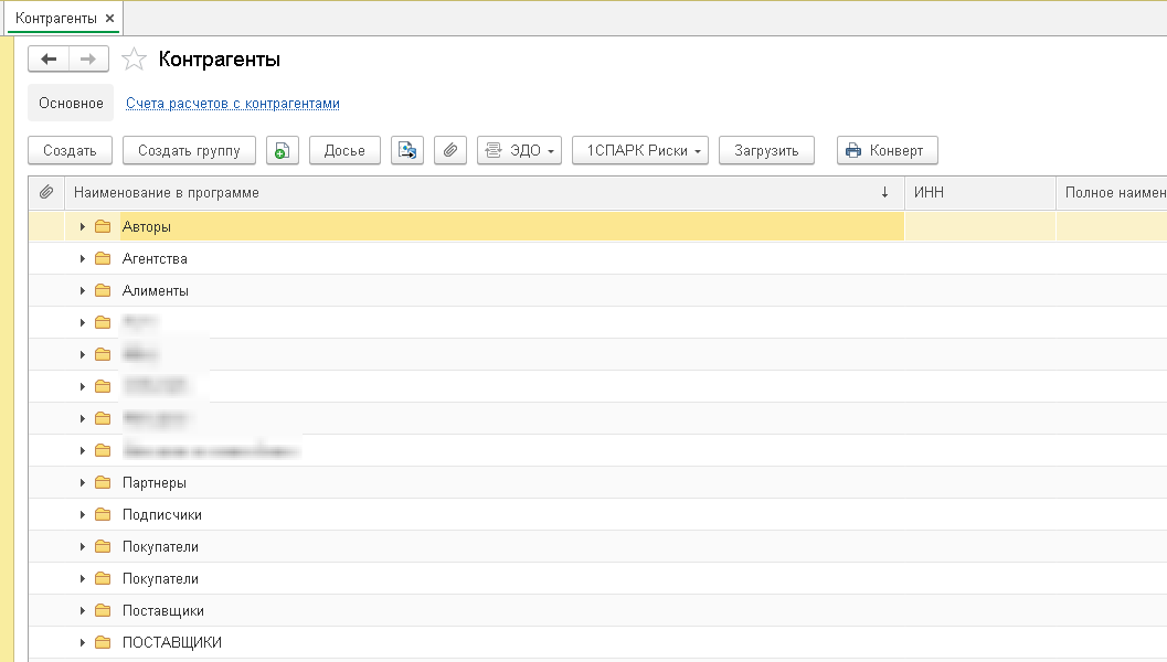Группы контрагентов — это папки, в которые отнесены контрагенты в 1С: