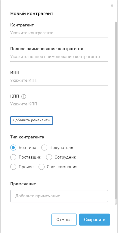 Выберите тип контрагента из предложенных. При необходимости добавьте примечание: