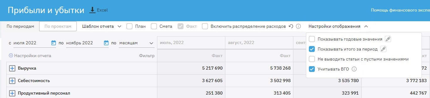 Документы будут иметь статус внутренние. Если вы хотите увидеть их в отчёте ПиУ, то выберите галочку в чек-боксе «учитывать ВГО»: