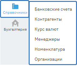 В разделе «Справочники» 6 подразделов: