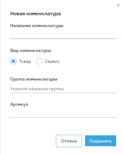 Для того, чтобы добавить номенклатуру, нажмите на кнопку «+Добавить номенклатуру».